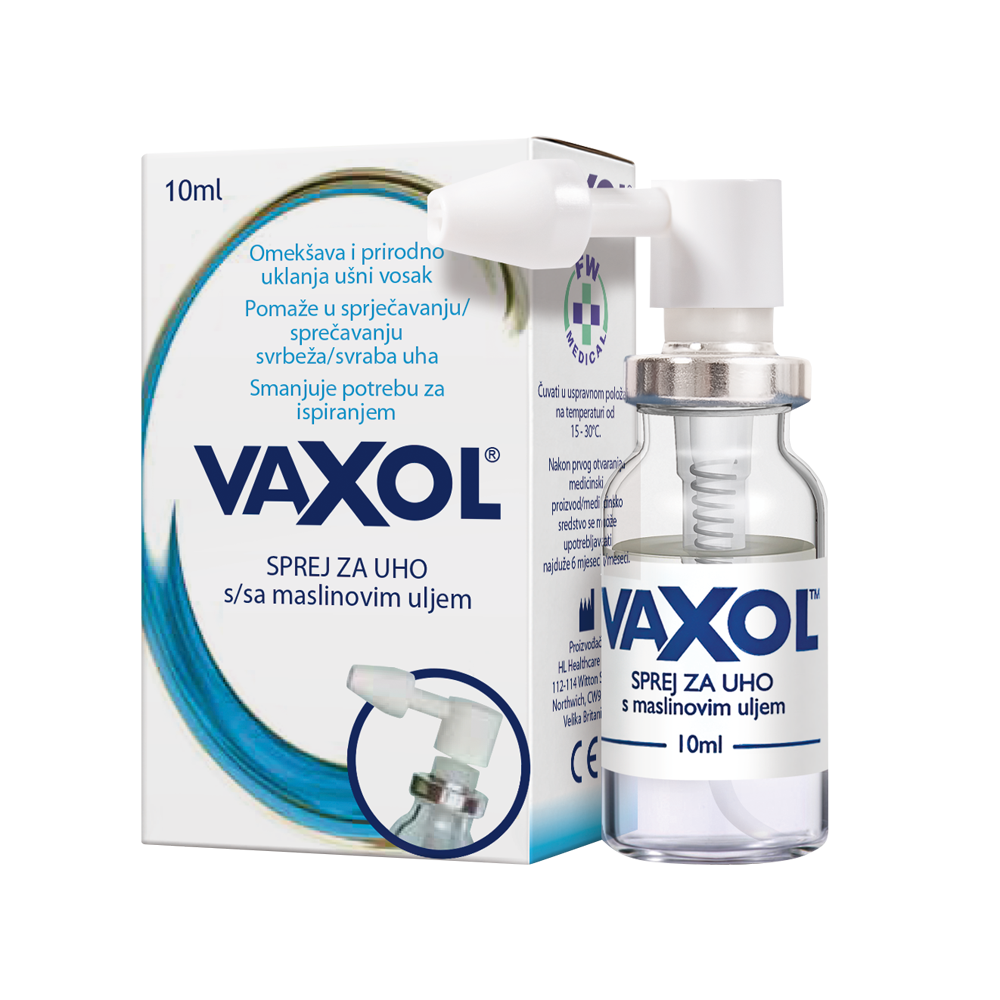 Vaxol® sprej za uho sa farmaceutski prečišćenim maslinovim uljem na jednostavan i siguran način uklanja višak cerumena u uhu. Pogodan je za: osobe sklone preteranom nakupljanju cerumena, osobe koje nose slušne aparate, osobe koje često nose slušalice i za